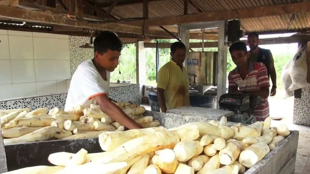 O destino final da macaxeira plantada na região servirá no preparo de goma, farinha e outros derivados. Na área do do produtor rural José Ferreira a safra dele, este ano, ficou comprometida por causa da alagação, por isso precisou comprar a mandioca, em Acrelândia, para não parar a produção na casa de farinha dele. No local são gerados sete empregos, a maioria, mão de obra familiar. O seu José, é só gratidão pelo avanço no campo em sua comunidade.