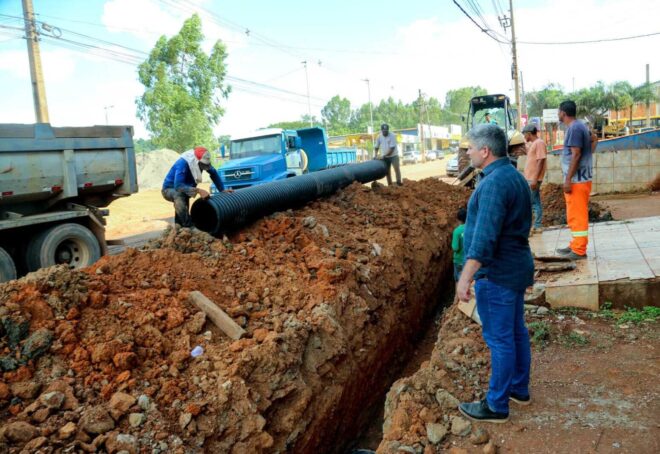 Segundo informou o prefeito Sérgio Lopes que esteve acompanhando o início dos serviços, primeiro será feito a instalação dos tubos e em seguida será feito o reviramento de solo, para depois de compactado ser imprimado e aplicado a camada asfáltica.