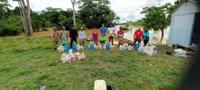 A prefeitura enviou cestas básicas, agua e combustível para serem utilizados em canoas motorizadas o único transporte disponível para essas famílias.