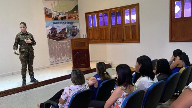 A visita começou com uma palestra ministrada por militares, sobre as diferentes formas de ingresso nas Forças Armadas, destacando a importância do comprometimento e da disciplina para quem deseja seguir essa carreira.