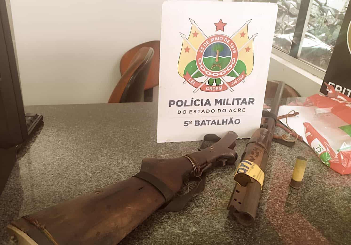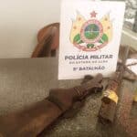 Durante as operações, os policiais também receberam denúncia sobre indivíduos que estariam portando armas de fogo sem autorização. Após averiguação, a informação foi confirmada e duas espingardas foram apreendidas. O material foi entregue à polícia judiciária para as providências cabíveis.