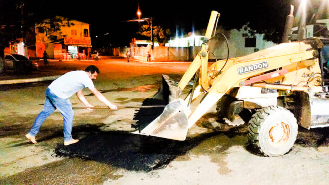 Segundo Raimundão a operação é feita aos poucos devido à logística. “Temos que trazer a massa asfáltica de Rio Branco onde a mesma é usinada e por isso não podemos trazer em grandes quantidades, pois se esfriar perderemos to produto.” Mais mesmo assim estamos avançado e recuperando as ruas de nossa cidade.