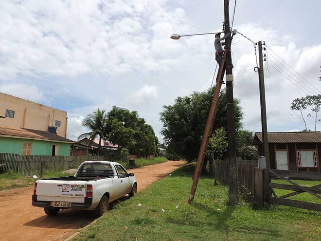 Os trabalhos já foram realizados nos bairros do Mutirão de Madeira e Alvenaria e parte do Hermínio de Melo na rua do Ibama, o próximo bairro a ser contemplado será o bairro da Bolívia que será iluminado também a ponte que dá acesso ao bairro.