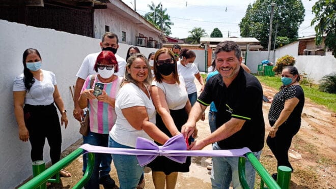 O prefeito Sérgio Lopes acompanhado da Secretaria Municipal de Educação Eunice Maia Gondim, Nilcelene Eduino Coordenadora de Ensino, Luzinete Lima Presidente do conselho Municipal de Educação, a Gestora da Escola Rosicleide Ferreira e assessores e servidores, fez a reinauguração da referida escola.