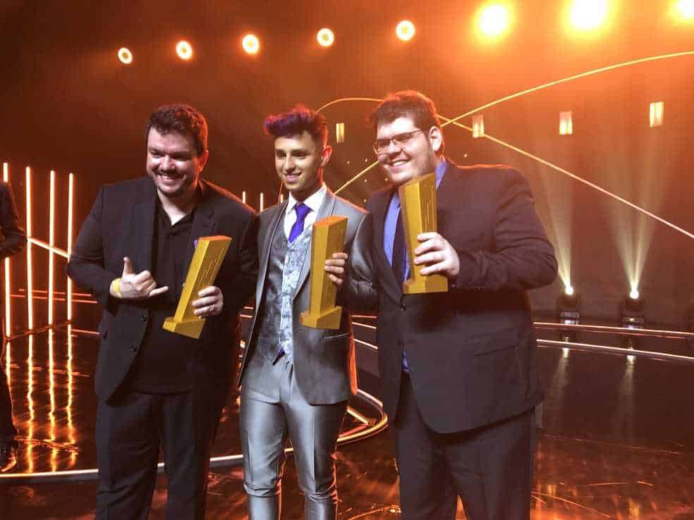 Gaules, Nobru e Casimiro posam com troféus do Prêmio eSports Brasil 2021 — Foto: Gabriel Oliveira