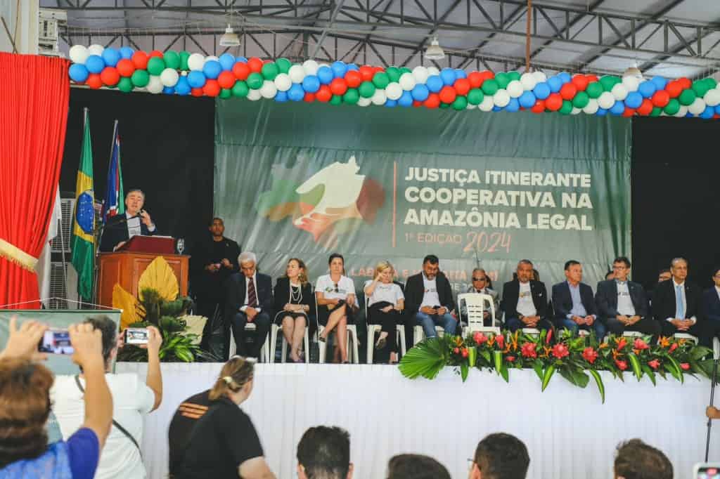 A desembargadora-presidente do Tribunal de Justiça do Acre (TJAC), Regina Ferrari, participou junto ao ministro Luís Roberto Barroso, presidente do Conselho Nacional de Justiça (CNJ), do “Programa Justiça Itinerante Cooperativa Amazônia Legal”, em Humaitá, no Amazonas, nesta terça-feira, 18. O objetivo da ação é ofertar serviços básicos de cidadania as regiões da Amazônia Legal que não têm estrutura de poder público.