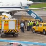 Ao desembarcar no aeroporto de Rio Branco, coronel André Batista é recepcionado pelo secretário de governo, Luiz Calixto e o assessor da Sejusp, tenente Nil. Foto: Ascom/Segov