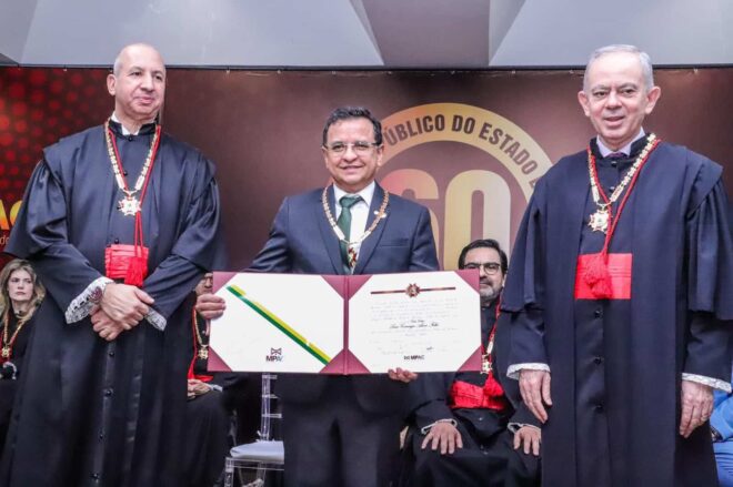 O presidente da Assembleia Legislativa do Acre (Aleac), deputado Luiz Gonzaga, foi homenageado nesta quarta-feira (17) com o Gran Colar da Ordem do Mérito do Ministério Público do Acre (MP/AC), comenda concedida a personalidades que contribuíram com o MP.