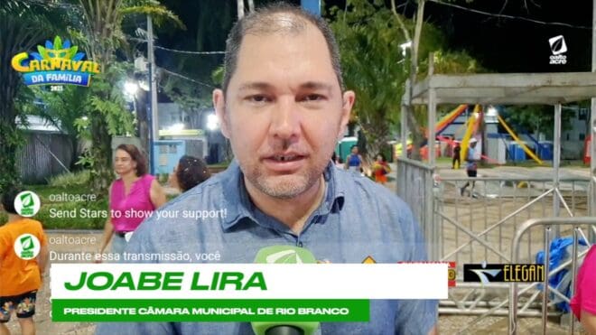 O presidente da Câmara Municipal de Rio Branco, Joabe Lira (PP), esteve presente no Carnaval 2025 realizado no centro da capital neste domingo (2), acompanhado de sua esposa e filhos. O vereador elogiou a iniciativa do Governo do Estado, Prefeitura e Acisa em trazer de volta o carnaval para o centro da cidade, proporcionando alegria aos foliões e aquecendo a economia local.