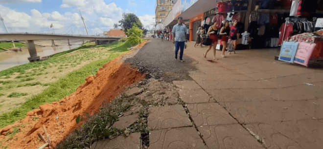 O Calçadão Raimundo Escócio, na Rua Raimundo Escócio, é uma área comercial movimentada e fica às margens do Rio Acre, mas tem cedido várias vezes nos últimos anos.