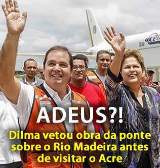 Os acreanos vão passar mais alguns anos atravessando o rio Madeira em cima de balsas. A presidente Dilma Rousseff (PT), que anunciou a construção de uma ponte sobre o Madeira durante a visita que fez ao Acre, no dia 16 de março deste ano, já havia vetado a obra no dia 24 de dezembro de 2013, conforme mostra a Mensagem de nº 595, enviada ao Senado Federal.