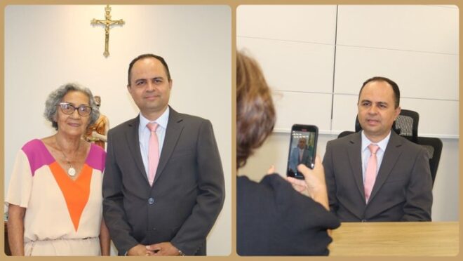 O Presidente do Tribunal Regional Eleitoral do Acre (TRE-AC), Desembargador Júnior Alberto, viveu um momento especial e de profunda gratidão ao receber a visita, na tarde desta terça-feira, 29, de sua antiga professora, Dolores da Paixão Vasconcelos Alexandrino, que lecionou para ele nos tempos em que estudava no Instituto Odilon Pratagi (IOP), em Brasileia.