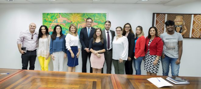 Estiveram presentes na reunião para definir a 2a edição do Programa Jovem Parlamentar 2019, o Presidente Nicolau Júnior, o Deputado Daniel Zen, a Diretora da Escola do Legislativo, Rachel Helena Farias; a Secretária Executiva Adjunta, Karen Silva; Nelsa Santiago; Mauro Matos Mourão, Raquele Nasserala e Anne Cristina Ruela, da Secretaria de Educação; Débora Karen e Antônia Geane, do TRE e Kalline Silva e Eduardo Rensso, Jovens Parlamentares em 2018.