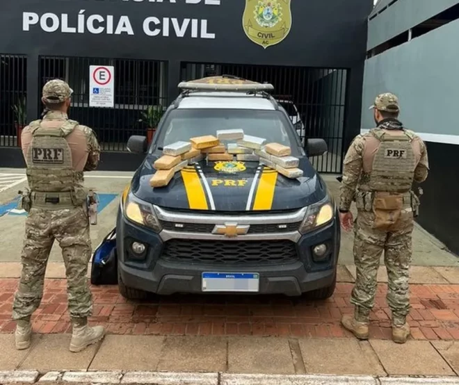 A Polícia Rodoviária Federal do Acre (PRF-AC) apreendeu 20 quilos de droga na manhã dessa sexta-feira (28) durante uma fiscalização na BR-317, na altura do km 96, no município de Senador Guiomard. Os policiais deram ordem de parada para um motorista que dirigia um táxi que havia saído da cidade de Plácido de Castro para a capital acreana, Rio Branco.