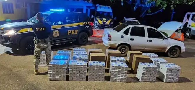 Ao receber ordem de parada, o motorista tentou fugir, mas acabou sendo detido rapidamente pelos agentes. Durante a vistoria, os policiais confirmaram que o carro estava carregado com milhares de maços de cigarros da marca “Point”, produto de origem estrangeira que havia ingressado no país de forma irregular. A ocorrência foi configurada como crime de contrabando.