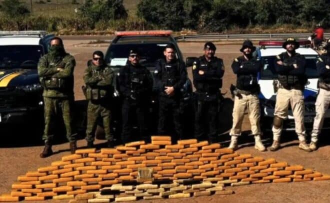 Dentro do Onix, a PRF encontrou 126,75 kg de maconha, 20 kg de pasta-base de cocaína e 3,25 kg de skunk. Também foram apreendidas placas de caminhão ligadas à empresa Galvan Transportes Logística Serviços e Representação Ltda., o que levantou suspeitas sobre o uso de transportadoras no esquema criminoso.