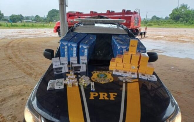 Um grande carregamento de mercadorias irregulares foi apreendido pela Polícia Rodoviária Federal (PRF) na manhã de quarta-feira (17), no km 729 da BR-364, em Cruzeiro do Sul, Acre. A carga, divulgada nesta quinta (18), continha centenas de produtos eletrônicos de origem estrangeira — como celulares e fones de ouvido —, patinetes e medicamentos sem documentação fiscal ou autorização sanitária.