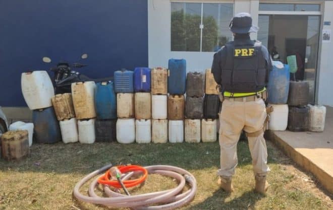 A Polícia Rodoviária Federal (PRF) apreendeu, na manhã do último domingo (15), cerca de 168 litros de combustível que estavam sendo armazenados e vendidos ilegalmente em um estabelecimento no município de Senador Guiomard/AC, na BR-364. Além disso, foram apreendidos 26 galões vazios de 20 e de 50 litros, mangueiras e funis.