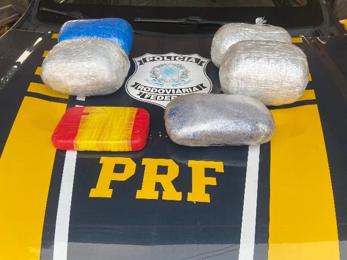 No momento da inspeção no interior do taxi-lotação, foi notado um forte odor de substância análoga à maconha, o que despertou a atenção da equipe. Ao abrir o porta-malas do veículo, foi identificada uma mala de cor vermelha, que a passageira assumiu ser dona, fornecendo a chave do cadeado que a trancava. Questionada sobre a presença de algum ilícito e o conteúdo de sua bagagem, ela permitiu a inspeção. Dentro da mala, foram encontrados cinco invólucros contendo aproximadamente 5,48 kg de substância com características análogas à maconha e um tablete contendo cerca de 1 kg de substância semelhante à droga conhecida como “crack”, envoltos em roupas e toalhas com pó de café para tentar disfarçar o odor.