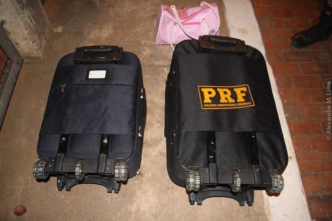 O patrulheiros passaram a desconfiar das armações de ferro e plástico que dão suporte na mala. Com uma furadeira, perceberam que havia um pó branco, com característica de cloridrato de cocaína, fato esse confirmado depois com o narcoteste.