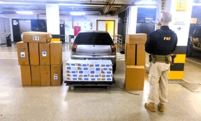 A equipe da PRF encontrou 20 caixas do produto contrabandeado no carro. O homem foi encaminhado à Delegacia da Polícia Federal, onde foi autuado pelo crime de contrabando e aguarda os procedimentos legais.