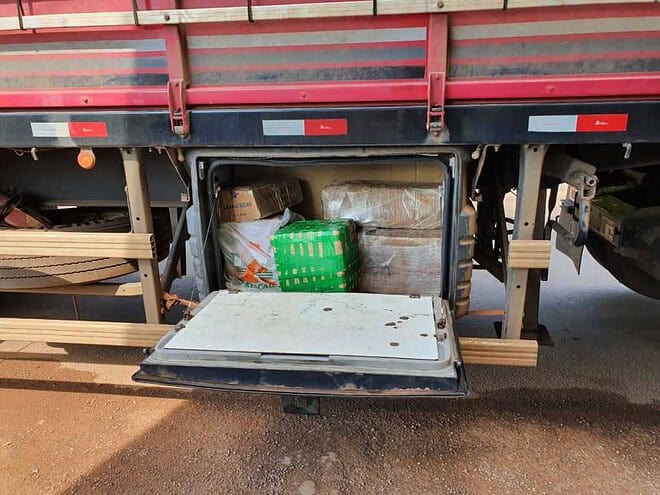No interior da cabine, os policiais encontraram R$ 54.650,00 em espécie, porém o motorista não soube explicar a origem do dinheiro. Na parte externa do veículo, no local da “cozinha” e dentro de uma caixa de ferramentas, a equipe policial localizou vários pacotes contendo substância com características de cocaína.