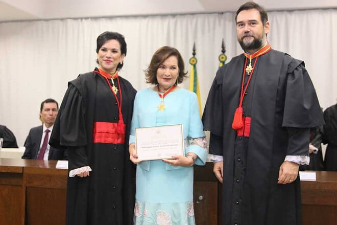 Terezinha recebeu das mãos da procuradora-geral de Justiça do Estado do Acre, Kátia Rejane de Araújo Rodrigues, a mais alta honraria do MP acreano, que é a medalha da Ordem do Mérito, no grau Grão-Colar, destinada a agraciar pessoas físicas e jurídicas que tenham prestado relevantes serviços às instituições públicas e à sociedade.