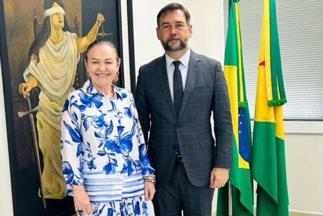 A presidente do Tribunal de Justiça do Acre, desembargadora Regina Ferrari recebeu nesta segunda-feira, 29, visita institucional do procurador de Justiça Sammy Barbosa.