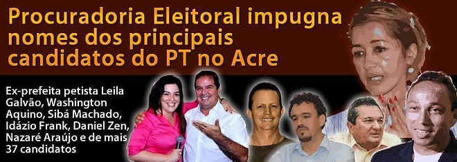 Dentre os principais nomes impugnados estão os do deputado federal Sibá Machado (PT), o ex-prefeito de Sena Madureira Nilson Areal, o deputado estadual Moisés Diniz (PCdoB) e a sub-chefe da Casa Civil, Nazaré Araújo, que é candidata a vice governadora pela Frente Popular do Acre.