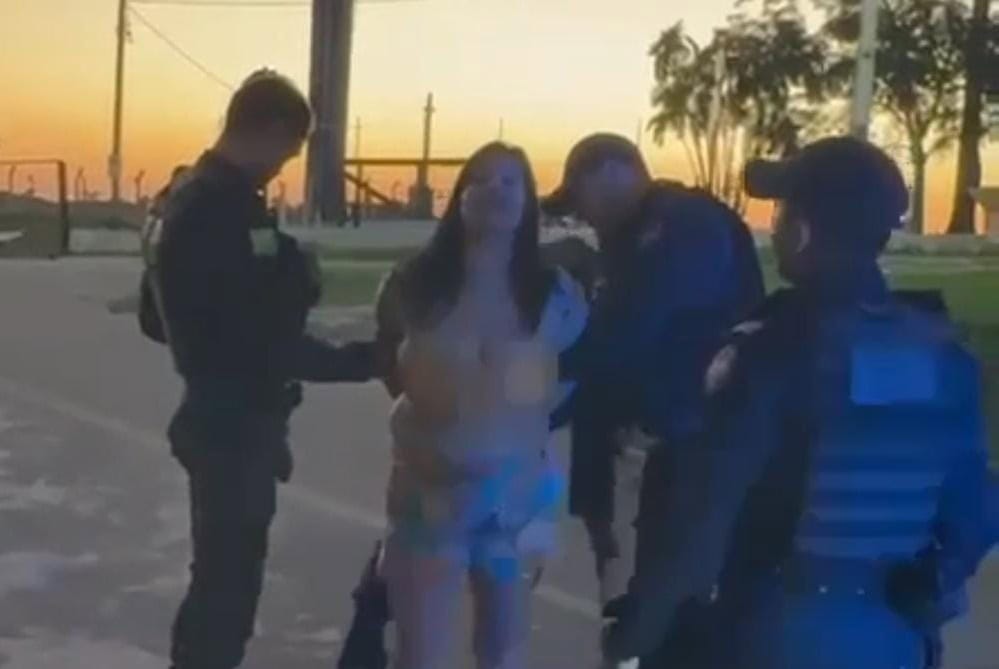 “A solicitante informou que seu vizinho estava lhe filmando enquanto ela estava despida. Ela afirma que sofre de transtorno de bipolaridade. Quando a equipe chegou ao endereço citado, encontrou Karlla Barbosa Godoy em via pública já bastante alterada falando frases desconexas e xingando seu vizinho, Andson. Ela passou a ameaçá-lo dizendo que iria matar ele devido um cano de água que estava do lado da casa dela exposto, que inclusive chegou a cortar o cano de água. Ela partiu para cima de Andson e lhe chutou, sendo necessário ser contida pela guarnição. Desta forma, a guarnição deu voz de prisão para a autora pelo crime de ameaça e vias de fato. Ela passou a ameaçar a esposa de Adson que está grávida, dizendo que iria fazê-la perder o filho, e com ameaças de morte”, diz o boletim.