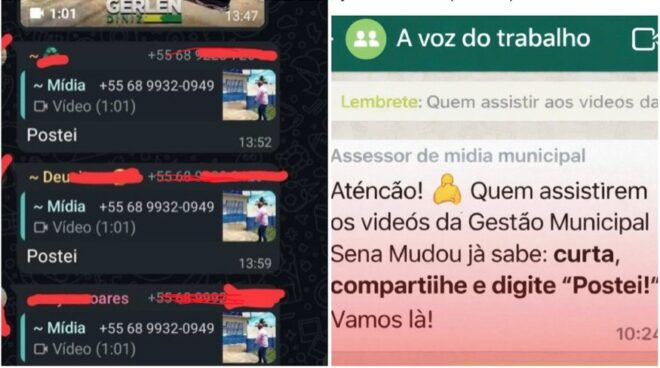 Servidores da prefeitura de Sena Madureira, incluindo professores, afirmaram que estão sendo vítimas de assédio moral e coação por parte do coordenador de mídia da gestão municipal. Segundo eles, todos os servidores são obrigados a salvar um contato intitulado de “mídia”, para repostar todas as publicações da gestão municipal em seus status no WhatsApp, e nas demais redes sociais.