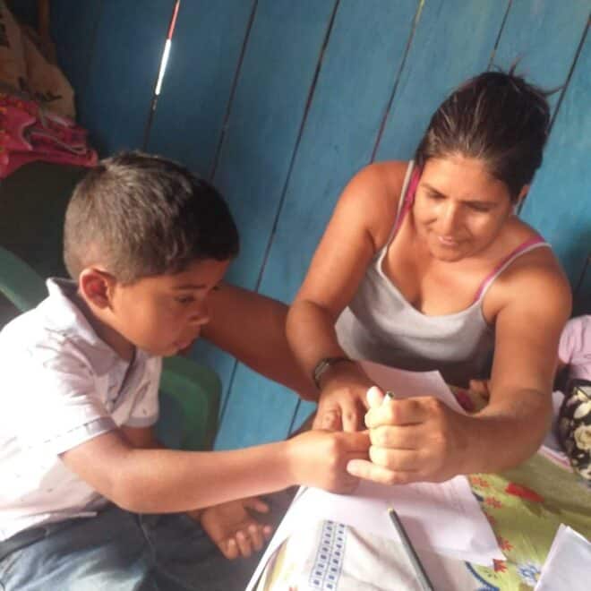 A agente educacional, Karine Costa de Araújo, atende 11 crianças do ramal da Aurora, km 75, a mesma destaca o contentamento em levar educação aos lares de cada criança nessa modalidade de ensino. “É muito gratificante realizar esse trabalho com as crianças que moram nas comunidades de difícil acesso. Elas estão se desenvolvendo bem, é uma alegria no dia que chegamos em suas casas, as famílias nos recebem com muito carinho e amor”, disse.