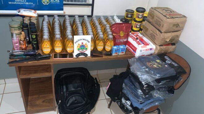 Policiais militares do 4º Batalhão recuperaram, na tarde de sábado (28), diversos produtos furtados de uma loja situada na Avenida Castelo Branco, em Senador Guiomard, no interior do Acre.