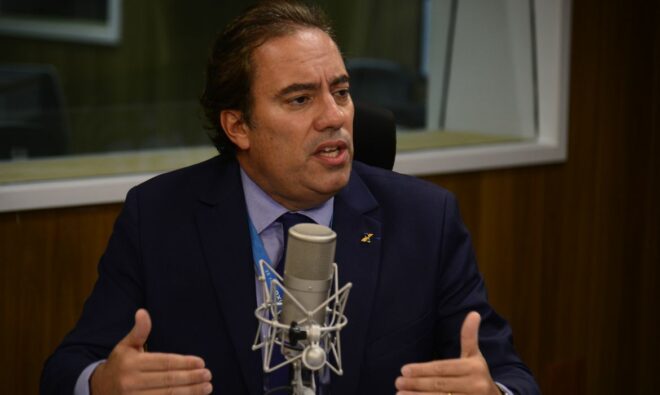 O presidente da Caixa, Pedro Guimarães, é entrevistado no programa A Voz do Brasil.