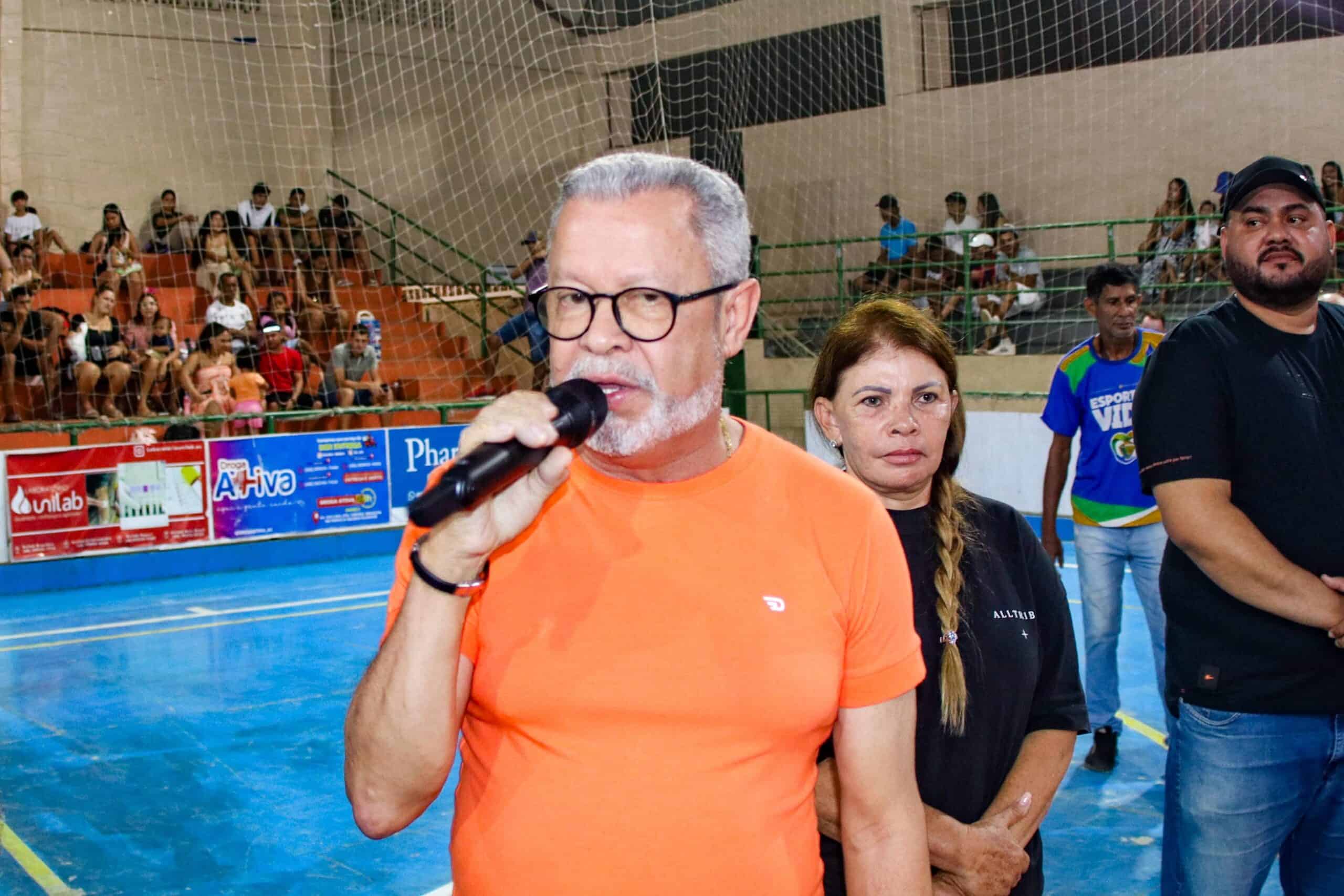 Representando o prefeito Carlinhos do Pelado, o vice-prefeito Amaral do Gelo destacou o compromisso da gestão com o fortalecimento do esporte local. “Este campeonato movimenta nossa juventude, valoriza os atletas e fortalece o espírito esportivo do nosso município. É uma alegria ver o ginásio lotado e saber que estamos oferecendo estrutura e incentivo como nunca antes”, afirmou.