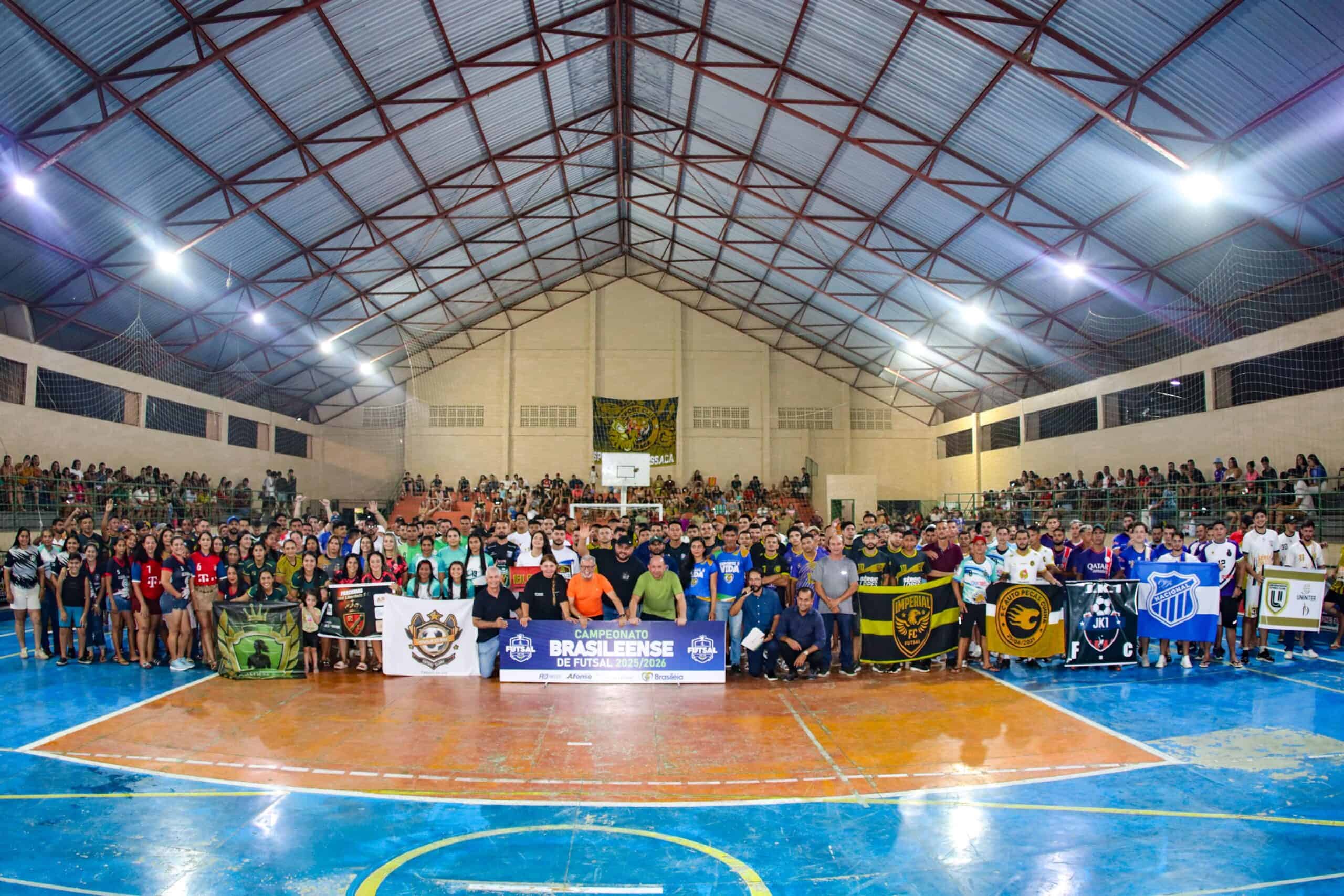 A Prefeitura de Brasileia deu início, na noite desta quinta-feira (11), ao Campeonato Municipal de Futsal 2025, considerado o maior já realizado no município. A cerimônia ocorreu no Ginásio Poliesportivo Luiz Eduardo Lopes Pessoa, reunindo autoridades, atletas e torcedores. Ao todo, 57 equipes e 855 atletas disputarão o torneio, que terá mais de 100 dias de competição, sempre às terças, quartas, quintas, sextas-feiras e sábados, a partir das 18h.