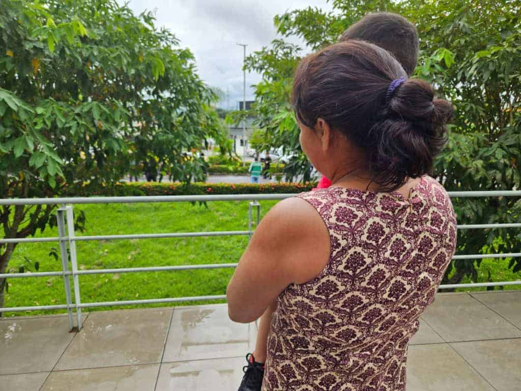 A avó paterna Francisca Osório do Nascimento segurou a mão do pequeno Kauan Lucas de três anos de idade, e colocando o menino no colo, disse “ela nem é minha filha e já estou chorando”. Os dois estavam ansiosos, foram até a parte lateral do átrio do Tribunal de Justiça do Acre (TJAC) tentar enxergar entre as árvores que cobriam o estacionamento, as mulheres que desciam do ônibus do Instituto de Administração Penitenciária (Iapen). A avó e o neto vieram de Sena Madureira, com apoio da Prefeitura da cidade, nesta sexta-feira,10, para que o menino conhecesse e abraçasse a mãe, pois já tinha dois anos que a mãe e filho não se viam, porque ela está cumprindo pena privativa de liberdade e a avó cria o pequeno desde muito cedo.