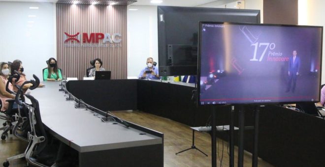 Em razão da pandemia do novo Coronavirus, a edição 2020 do Prêmio Innovare foi realizada de forma virtual, transmitida pelo Youtube. No MPAC, a procuradora-geral de Justiça, Kátia Rejane de Araújo Rodrigues, a coordenadora do CAOP-MAPHU, procuradora de Justiça Rita de Cássia Nogueira, e o promotor de Justiça Vanderlei Cerqueira, receberam os parceiros do projeto: professor Foster Brown, da Universidade Federal do Acre (UFAC), e a juíza auxiliar da presidência do Tribunal de Justiça do Estado do Acre (TJAC), Andréa Brito, para acompanharem a premiação.