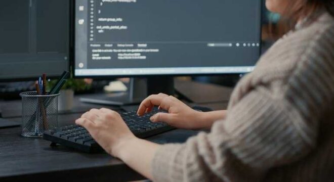Programadora escreve código em um computador FREEPIK/DCSTUDIO - ARQUIVO