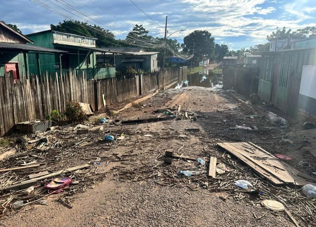 Mesmo com a vazante do Rio Acre, que já reduziu para 14,44 metros — menos de 50 centímetros acima da cota de transbordo —, moradores de áreas atingidas pela cheia histórica em Rio Branco enfrentam um cenário de destruição, com ruas tomadas por lama, lixo e água contaminada. Na Baixada da Sobral, região com vários bairros às margens do rio, a população relata apreensão com riscos à saúde.