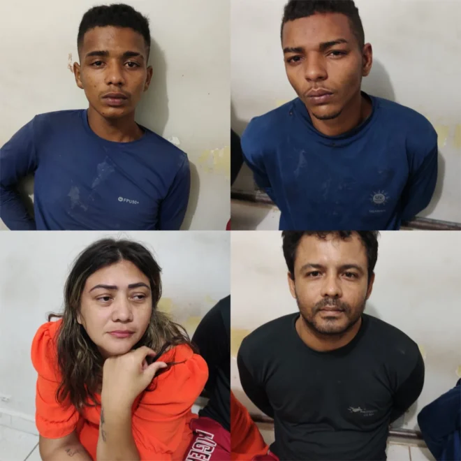 Narjara da Silva Souza, Mateus Melo da Silva, Matias Ferreira Lima, Francisco Feliciano Araújo Ferreira um adolescente de 17 anos, foram presos na madrugada desta terça-feira. A ação foi realizada por policiais militares do 2º Batalhão. A quadrilha foi interceptada na Via Verde, nas proximidades da Rotatória da Estrada Transacreana. Os quatro maiores foram indiciados pelos crimes roubo e cárcere privado.
