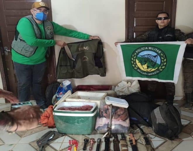Na ação, além das detenções foram aprendidas 40, 4 quilos de carne de caça, quatro armas de fogo, munições e terçados.
