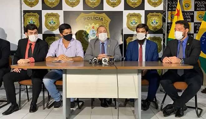 Delegados da Polícia Civil do Acre, que integram o Grupo de Enfrentamento aos Crimes Contra Ordem Tributária, concederam entrevista na manhã desta quarta-feira (2) para falar sobre a “Operação Omaggio”, que cumpriu 20 mandados de busca e apreensão, 4 mandados de prisão, bloqueio de 9 contas bancárias, sequestro e apreensão de 11 veículos em Rio Branco, Feijó e em Cuiabá.