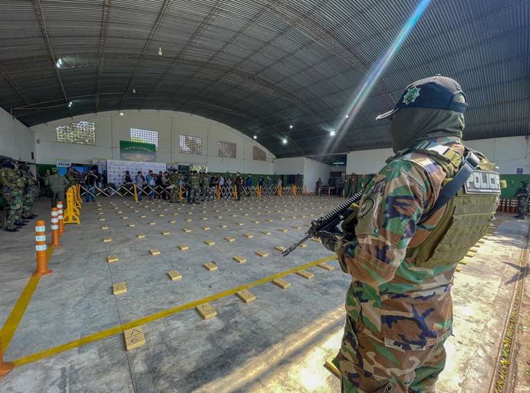 Ministro Del Castillo destacou que o avião continha 328 quilos de cloridrato de cocaína pura, que foram distribuídos em 310 embalagens em formato de tijolo. Foto assessoria