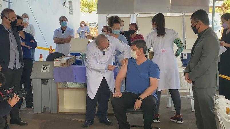 Os ministros da Infraestrutura, Tarcísio Gomes; André Mendonça, advogado-geral da União e cotado para assumir uma vaga no STF (Supremo Tribunal Federal); e Jorge de Oliveira, do TCU (Tribunal de Contas da União) foram imunizados por Queiroga, que é médico cardiologista.