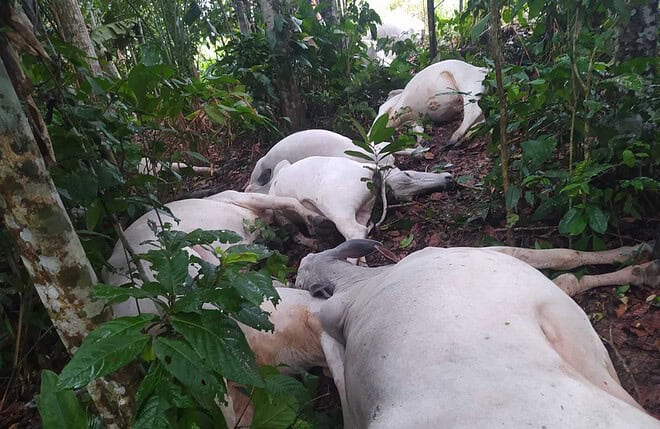 Um raio matou instantaneamente 16 cabeças de gado de uma fazenda, localizada no Ramal dos Terçados, zona rural de Sena Madureira.