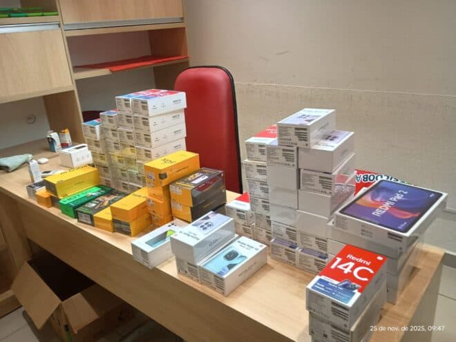 Durante as buscas também foram apreendidos selos falsos de certificação da Anatel e dezenas de smartphones e tablets.