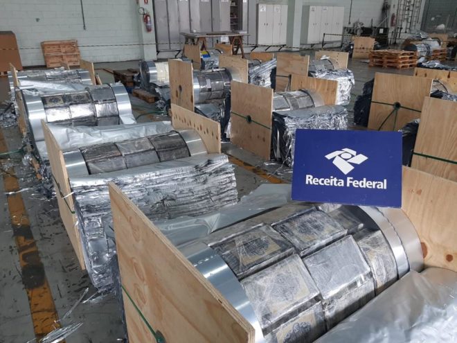 A droga estava cuidadosamente oculta em carregamento de bobinas de alumínio, destinadas ao porto de Roterdã, na Holanda.