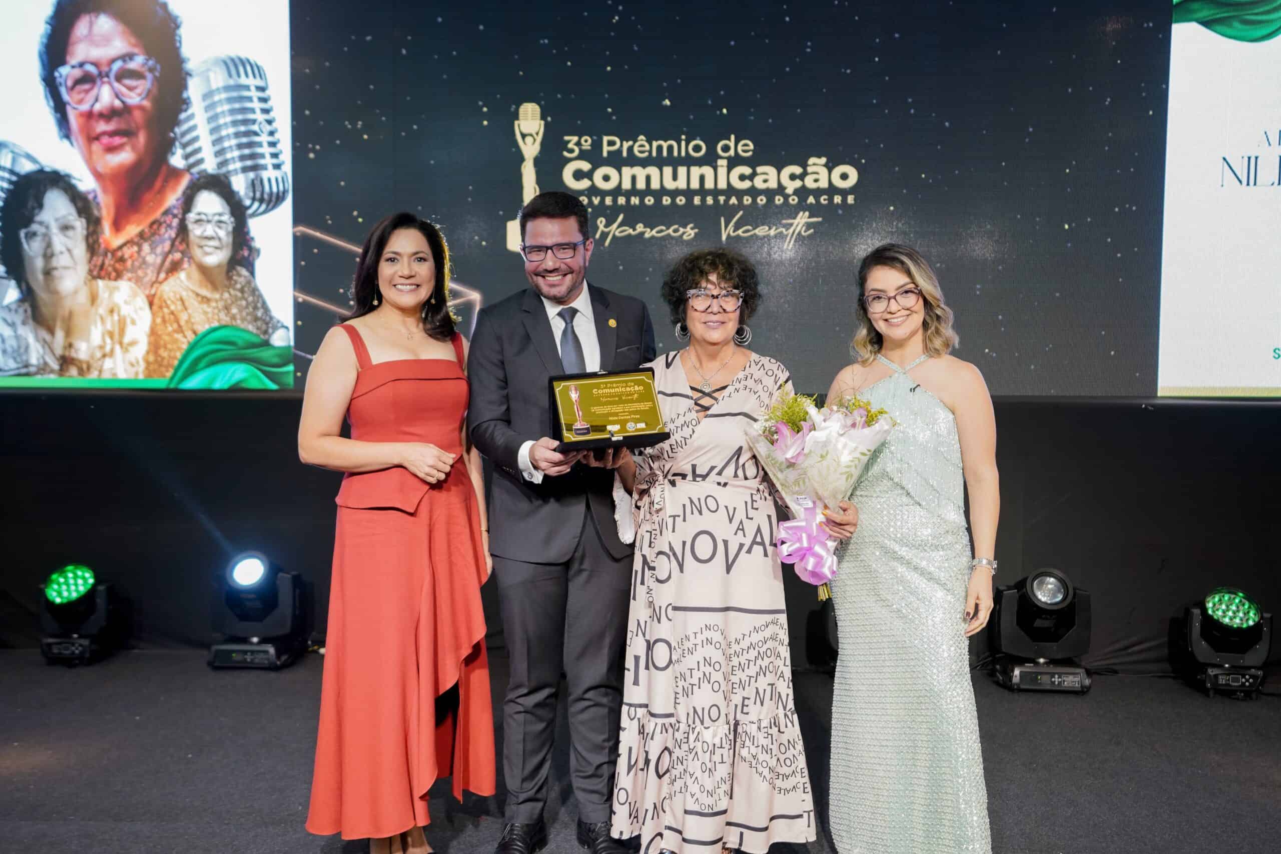 A noite também foi marcada por uma homenagem à radialista Nilda Dantas, reconhecida como a Rainha do Rádio. Com atuação desde 1971 nas rádios públicas do Acre, iniciando sua trajetória na Difusora Acreana, ela recebeu o tributo como forma de agradecimento pelos serviços prestados ao longo de décadas e pela contribuição histórica à comunicação acreana.