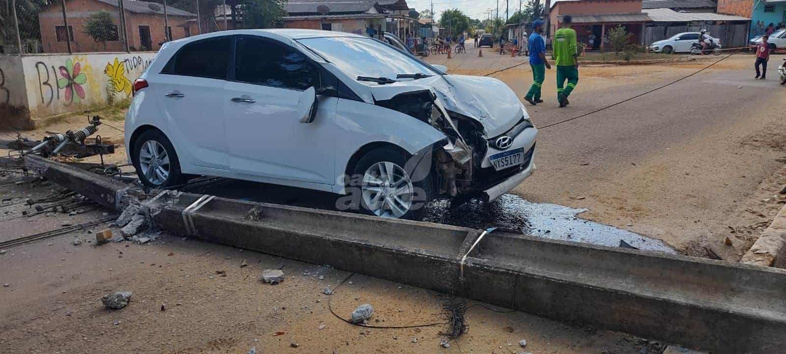 Equipe de policiais deram suporte ao veiculo, que havia colidido com um poste, derrubando-o e rompendo vários fios de energia, empresa restabeleceu o fornecimento de energia bairro Leonardo Barbosa em Brasileia na época.